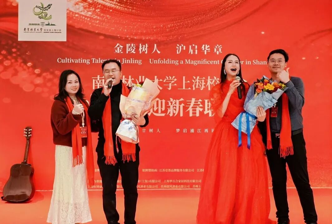 最后,上海校友会管理层集体上台,献上新年祝福,祝校友们:感恩南林、沪启华章、马年鸿运、喜乐安康!