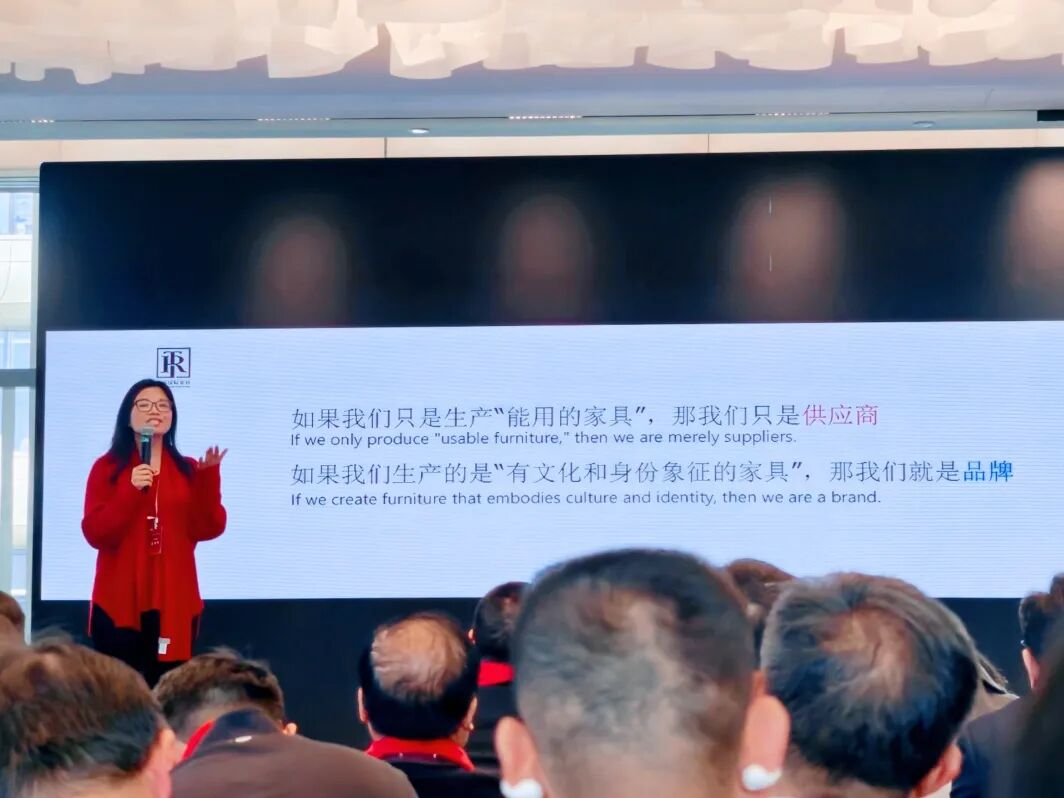 在接下来的主旨演讲环节,东莞名家具俱乐部国际贸易委员会会长、瑞彤国际家居董事长童建英校友首先做了《共享出海经验,共建东莞家具外贸新格局》。提出面对海外市场的竞争和客户需求,中国家具企业不能做廉价的世界工厂,而是要成为不可替代的价值创造者,并通过拉长服务链路,获得更多的利润。未来的赢家不是单打独斗的企业,而是携手共进的产业联盟。