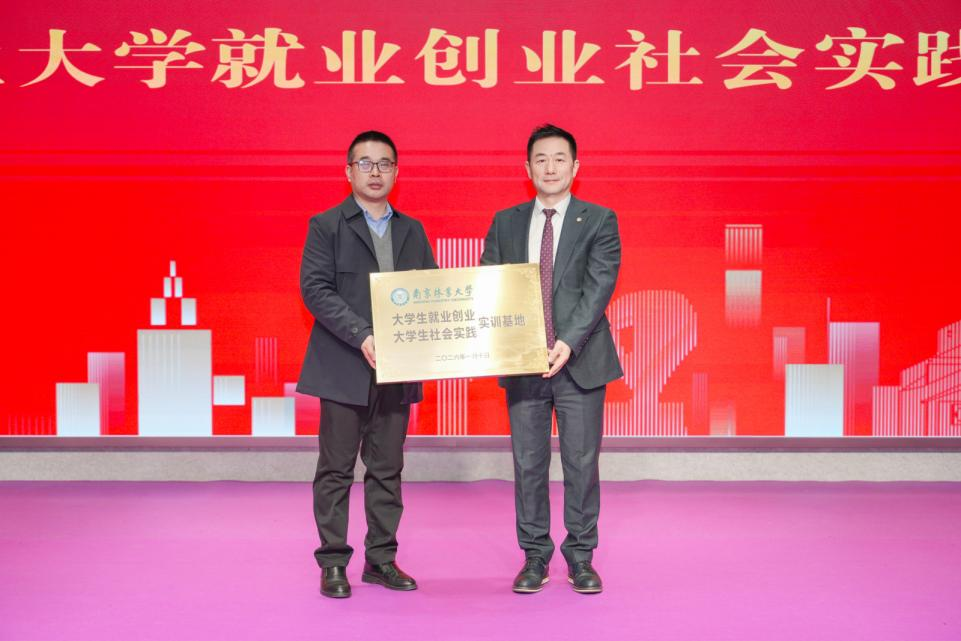 南京林业大学学生处副处长、大学生就业创业指导中心主任陈养彬为红蚂蚁装饰集团授予 "南京林业大学大学生就业创业社会实践实训基地" 牌匾,标志着校企合作迈出坚实一步,将为学校人才培养与企业人才储备提供双向支撑。