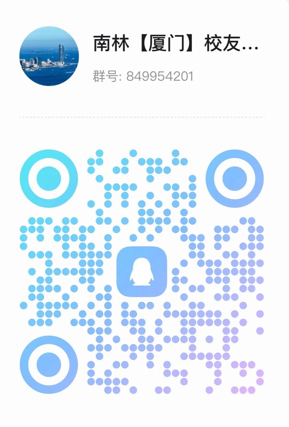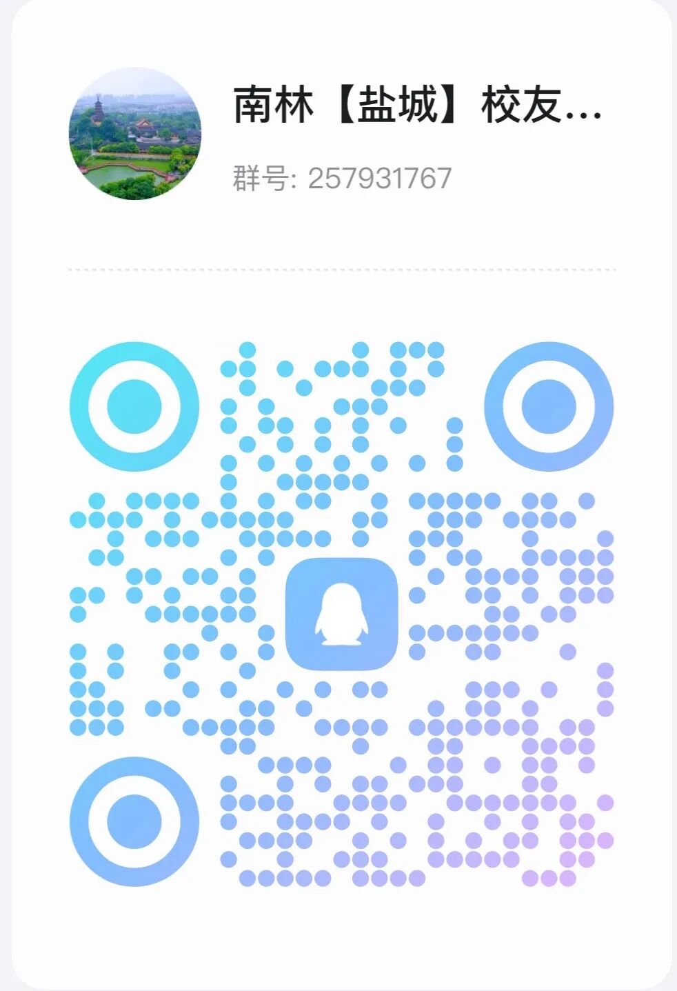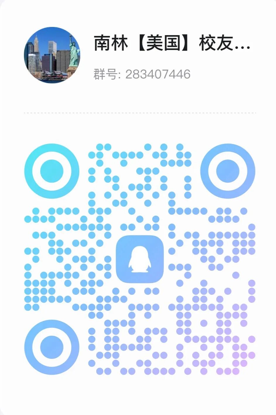 QQ群为南林校友分会官方群,是校友动态分享、互助信息的交流平台。倡导分享近况、资源互助;严禁发布违法违规信息(政治敏感、暴力色情、谣言等)、商业广告、恶意刷屏;严禁将群内聊天记录、成员信息转发至外部平台;未经同意,严禁对外发布含个人信息的群内合影、通讯录等材料;严禁发布不当言论,根据违规轻重,管理员提醒、禁言或至移出群聊。