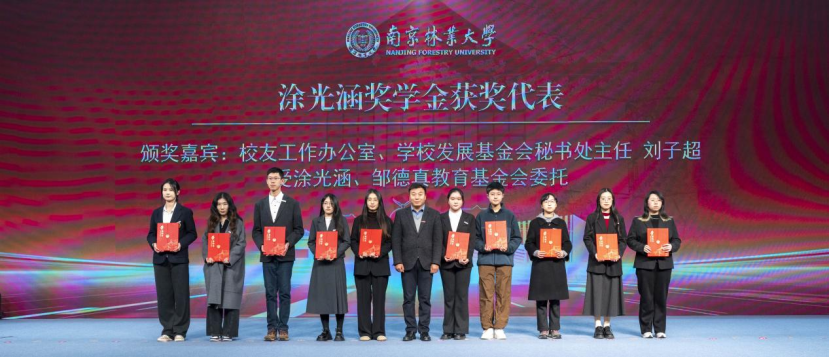 2025年12月17日下午,南京林业大学2024-2025学年学生工作总结表彰大会在新庄校区新体育馆隆重举行,全体校领导以及设奖单位和个人代表等出席会议,相关职能部门、学工委成员单位主要负责人,各学院、校区主要负责人,全体辅导员,受表彰师生代表及各学院学生代表参加活动。表彰大会期间,校友工作办公室、学校教育发展基金会秘书处刘子超主任受涂光涵、邹德真教育基金委托,代表捐赠方涂光涵、邹德真家属,为16位品学兼优的林科学子颁发涂光涵奖学金,延续了老校友心系林业教育、助力后辈成长的深厚情怀。