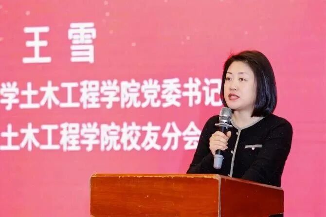 土木学院党委书记王雪在致辞中指出,长三角校友企业是学院产学研合作的重要伙伴。她表示,希望通过本次年会,构建"资源共享、信息互通、合作共赢"的校友生态圈,一方面支持学院绿色建造技术研发,另一方面促进校友企业间的技术协同,让南林土木的"绿色基因"在产业中落地生根。她呼吁校友企业与学院深化人才培养、技术攻关、成果转化等多维度合作,共同服务国家"双碳"目标。