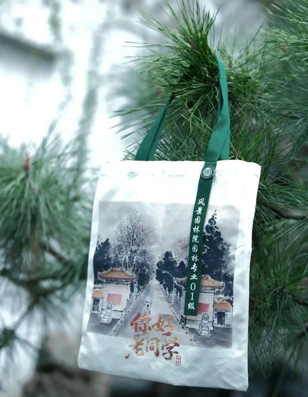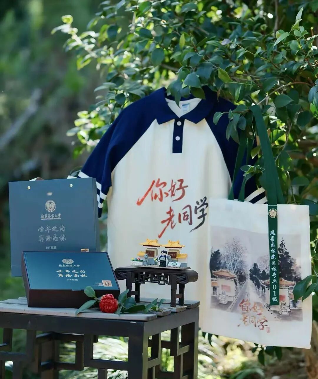 南林母校,是校友们心目中的神圣殿堂,是永不褪色的风景;南林大门,是矗立校友们心目中永远的人生航标。校友仇伟同学,以母校大门为蓝本,精妙构思设计成乐高积木模型,神还原了母校大门风貌,作为纪念品分送校友予恩师,妙趣横生、意义非凡。一砖一瓦,拼砌的是青春的坐标,筑起的是对母校的无尽眷恋。纪念环保帆布袋上,水墨氤氲的校门轮廓典雅呈现,饱含大家对国学、对园林的热爱。大家庄重的为彼此佩戴上校徽,今天,我们依然是南林学子,心怀热望,一如当年。