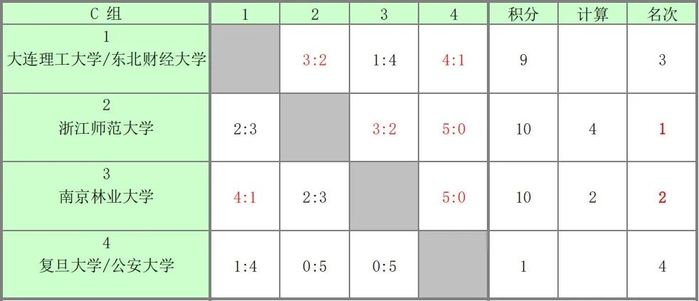 小组赛阶段队员们沉着应战发挥出色,4:1战胜大连理工大学/东北财经大学联队、5:0战胜复旦大学/公安大学联队,2:3不敌浙江师范大学,最后以小组第二顺利出线。