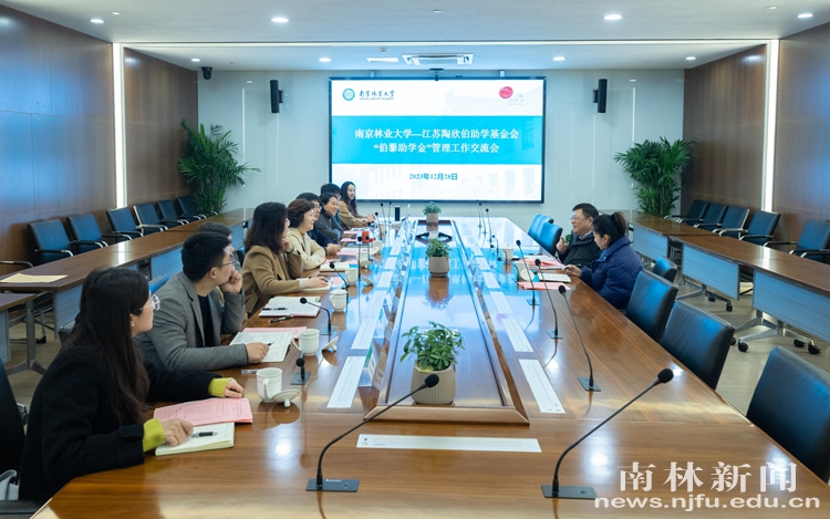【南林新闻中心讯】12月28日下午,南京林业大学——江苏陶欣伯助学基金会2023-2024年度"伯藜助学金"管理工作暨受助学生座谈会在图书馆8B115报告厅召开,副校长缪子梅,江苏陶欣伯助学基金会秘书长张利伟、项目经理李梦楠等出席,学生工作部(处)相关负责人、资助专项辅导员代表和受助学生代表等参加活动。