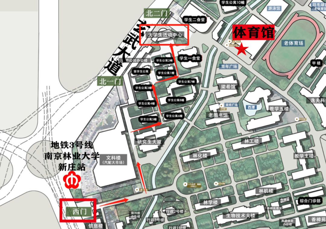 大学生活动中心步行路线图