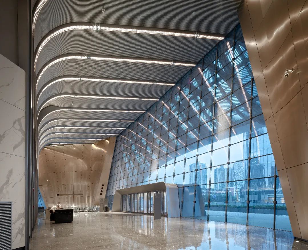 比如在上海中心设计的五层宴会厅的设计中,既要体现上海文化,又要结合当代感受,还要有一定的未来感,所以我们在设计手法上运用金属管组成的多维曲面的墙面,通过BIM的参数化设计来演绎了类似黄浦江沿岸的曲折灵动的感觉,既有现代感,又融合了当地文化,地面的地毯纹理是通过黄浦江的水纹演绎过来的,天花板的艺术灯是通过上海中心的LOGO演绎出来的,整个宴会厅的DNA都是上海的本土文化,但是又是一个现代高雅的宴会场所,既有细节,又有未来感,跟整个上海中心的气质相得益彰。
